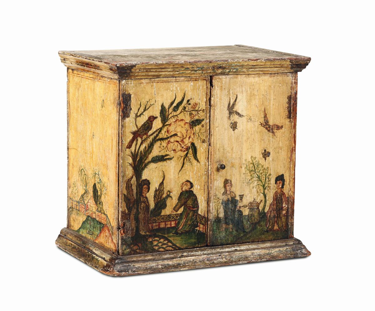 Piccolo stipo a due ante in legno laccato, XVIII-XIX secolo