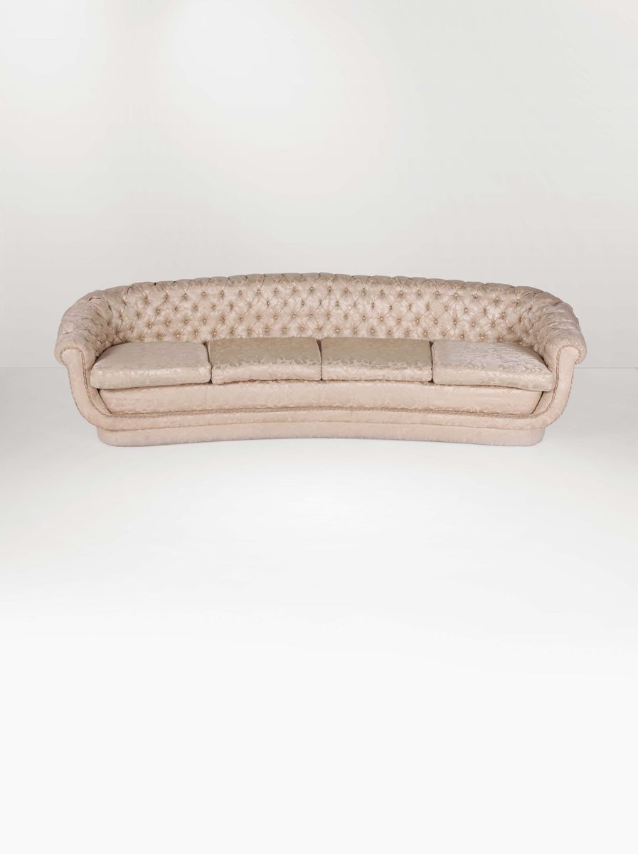 Divano con struttura in legno e rivestimenti in tessuto.