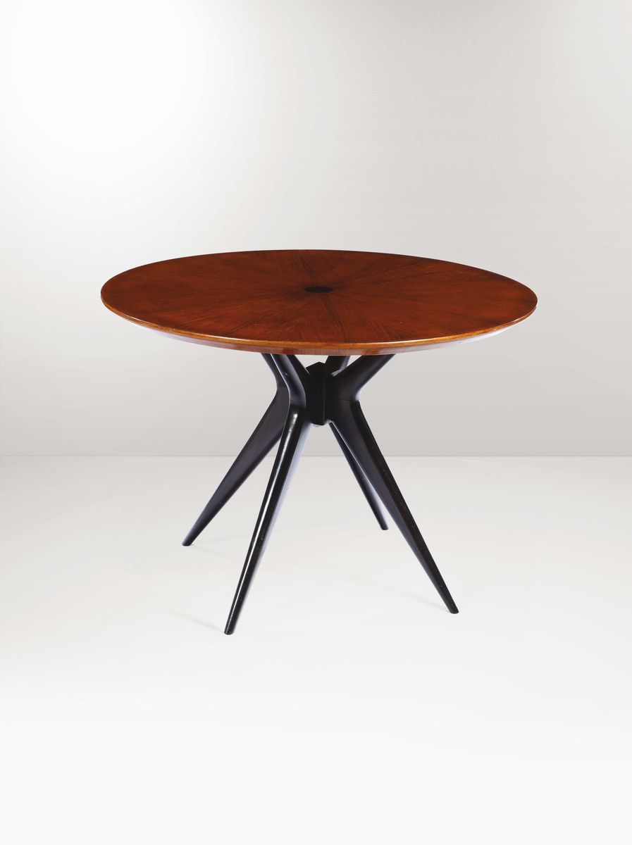 Tavolo in legno con supporti in legno ebanizzato.Prod. Italia, 1950 ca.cm 110x80