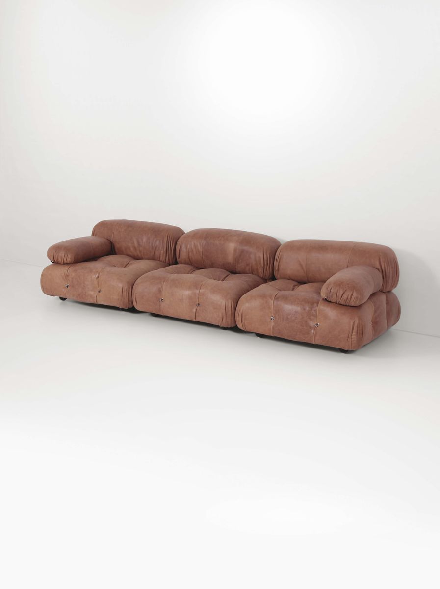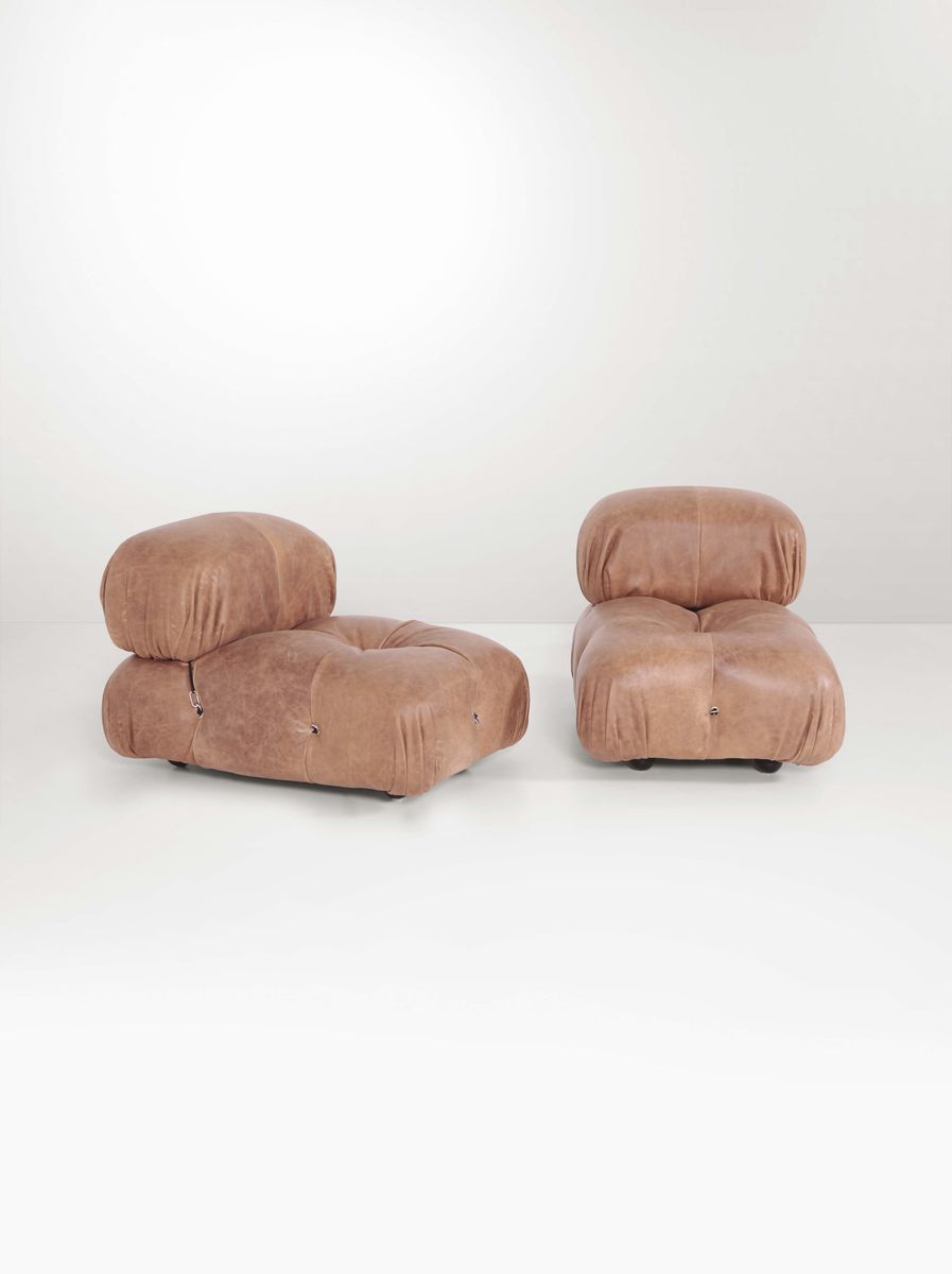 Salotto modulare Camaleonda composto da due sedute singole, una seduta angolare e otto sedute classiche. Sedute rivestite in pelle. Etichetta originale. Prod. C&B, Italia, 1970 Seduta classica: cm 90x75x85; Seduta singola: cm 60x70x85; Seduta angolare: cm 90x41x85.