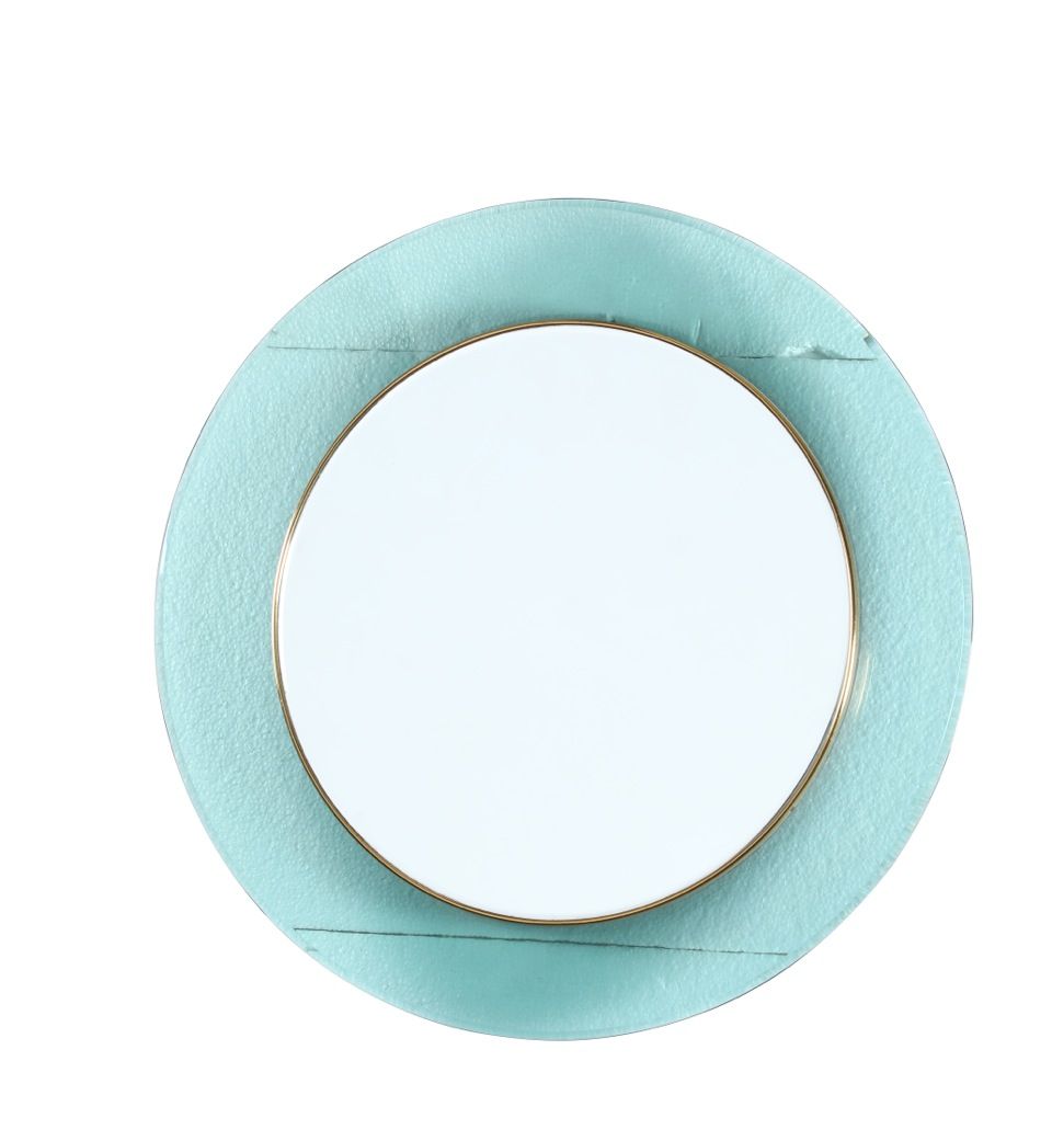 Specchio circolare con cornice in vetro colorato e molato. Prod. Fontana Arte, 1965 ca.cm 68