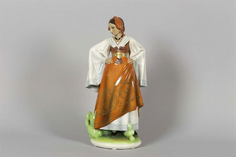 Abele Jacopi, Lenci, Turin, 1950 ca. A figure of a woman in a regional costume from Sicily, earthenware ceramics with a [..]