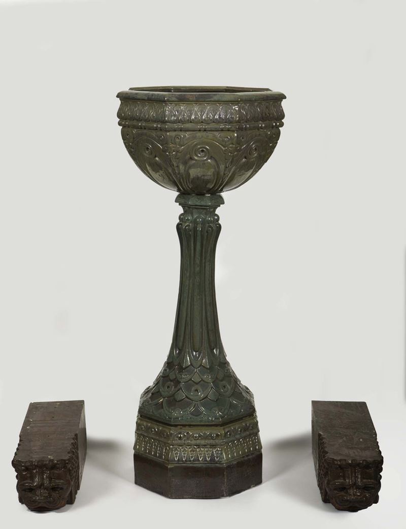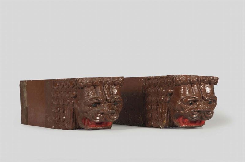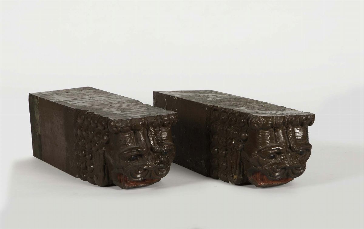Assieme due sostegni con teste di leone siamesi autenticati da Paola Polidori Chini