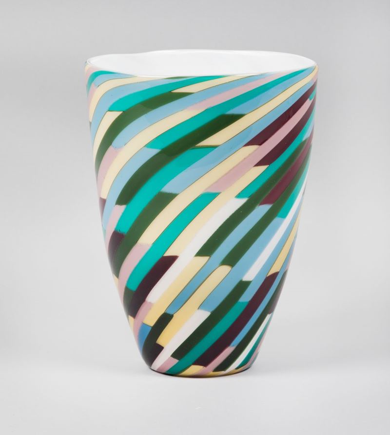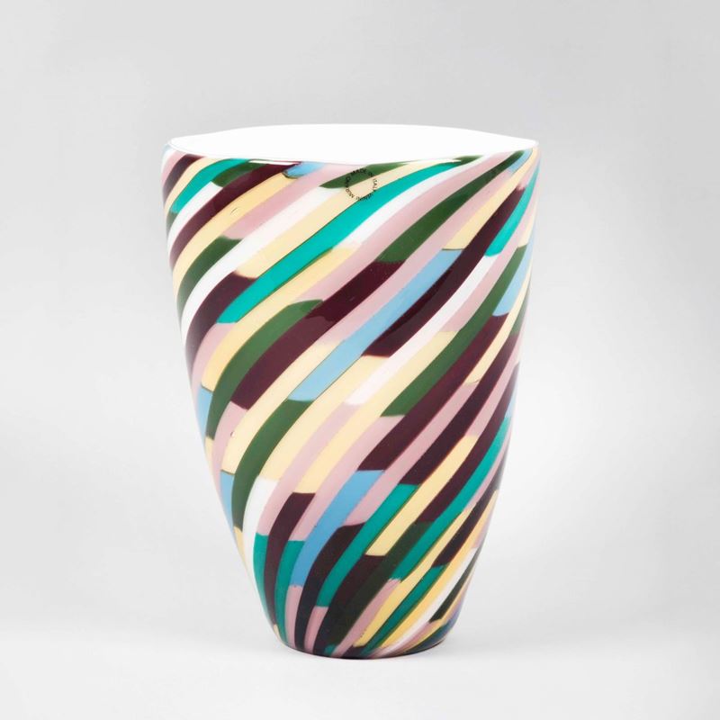 Laura Diaz de Santillana, Venini, Murano, 1986. A vase, Paul Klee series, in glass with a segmented cane decor