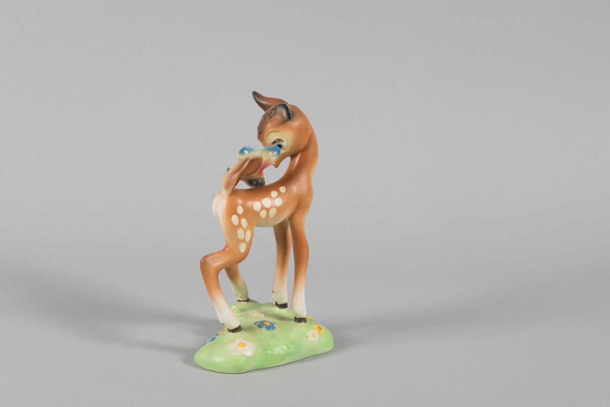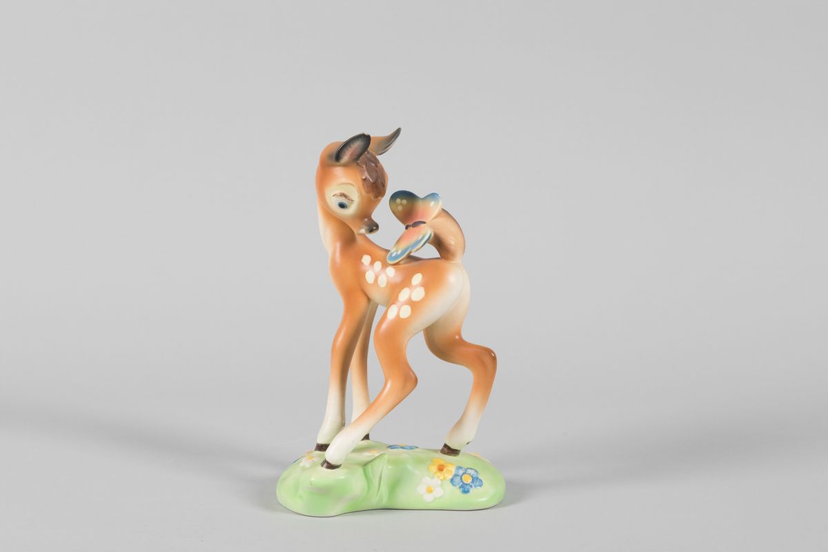 Lenci, Torino, 1950 ca. A figure of a deer, earthenware ceramics with a polychrome decor