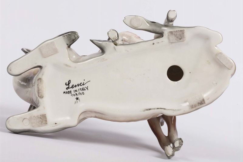 Lenci, Torino, 1950 ca. A figure of deer, earthenware ceramics with a polychrome decor