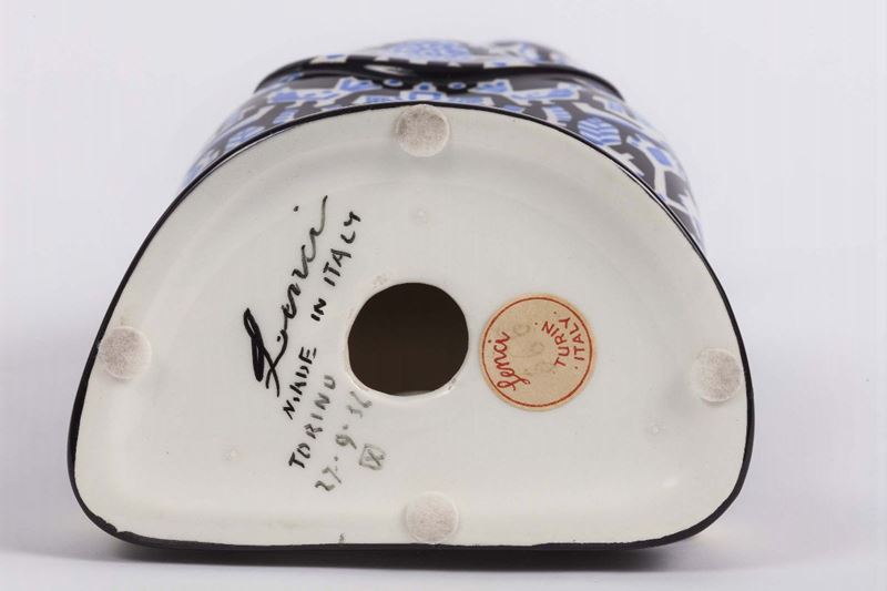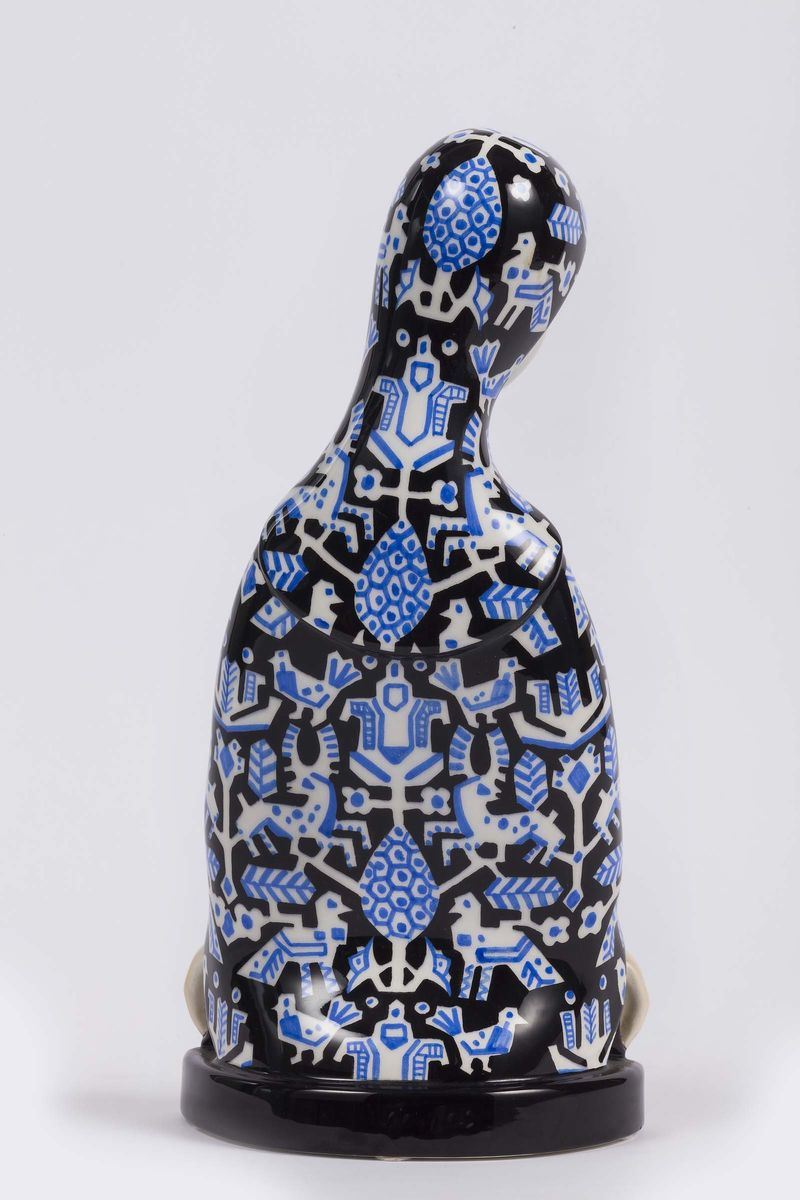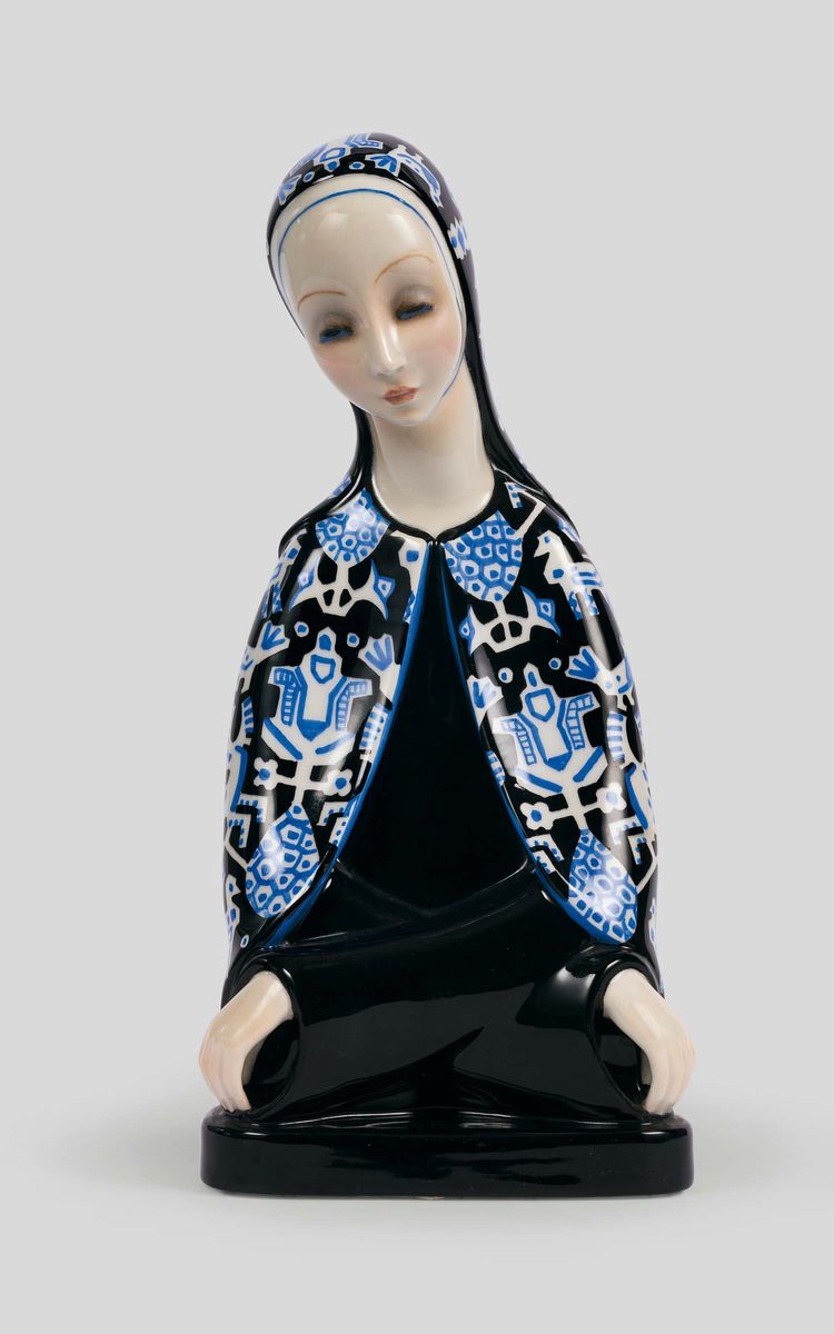 Lenci, Turin, 1930 ca. A Madonna with folded arms, earthenware ceramics with a polychrome decor