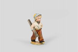 Tosin La Freccia, Bassano del Grappa, 1940 ca. A terra-cotta figure of a young skier with a polychrome decor