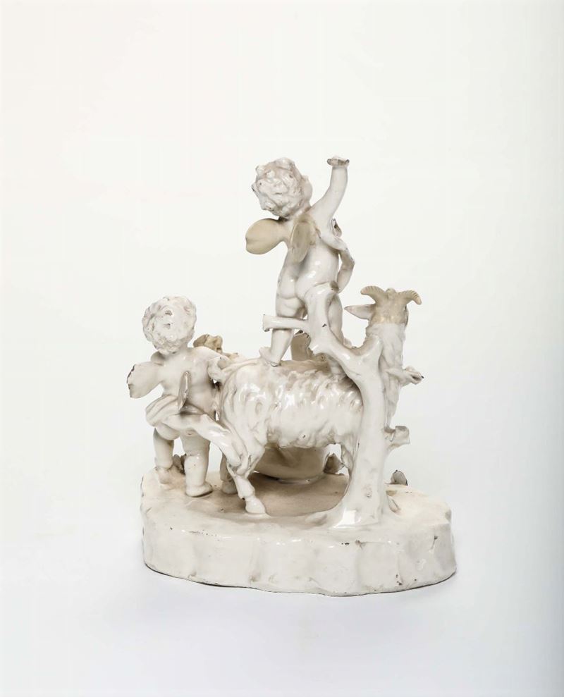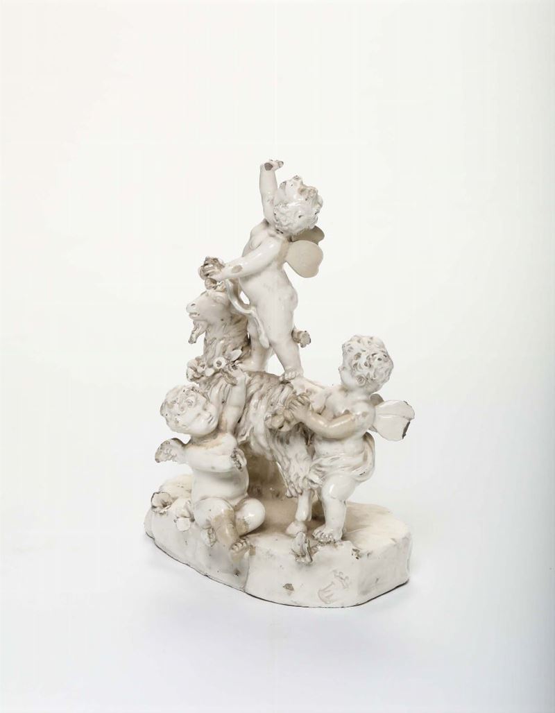 Gruppo in porcellana bianca con putti e capretta, XIX-XX secolo