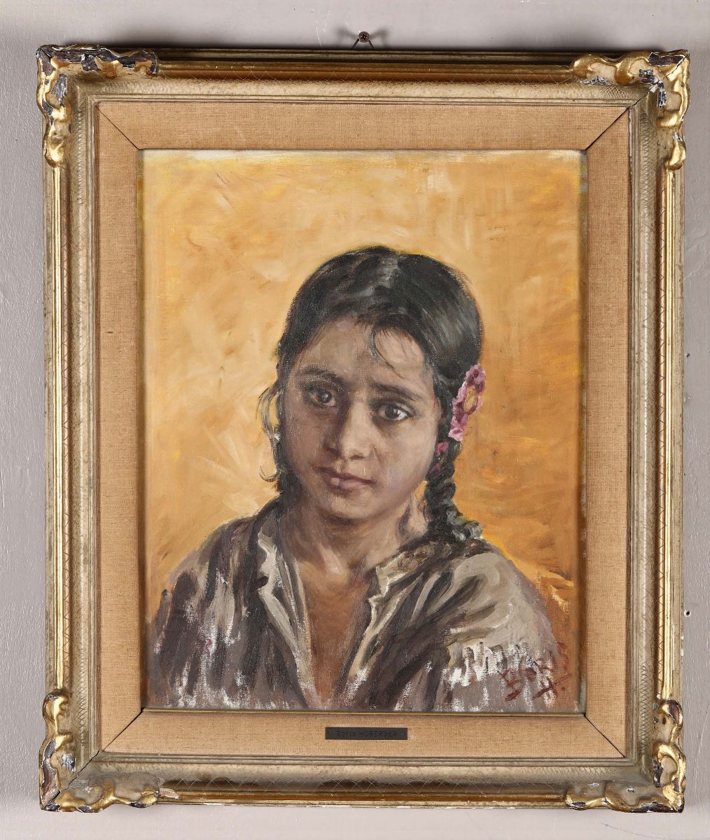 Lotto composto da natura morta con pere, natura morta con ghiandaia e ritratto di ragazza