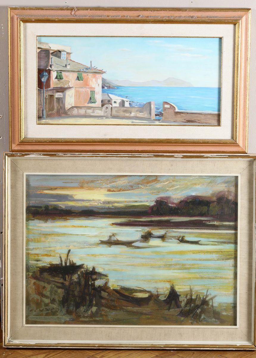 lotto di 6 dipinti raffiguranti paesaggi costieri di autori diversi
