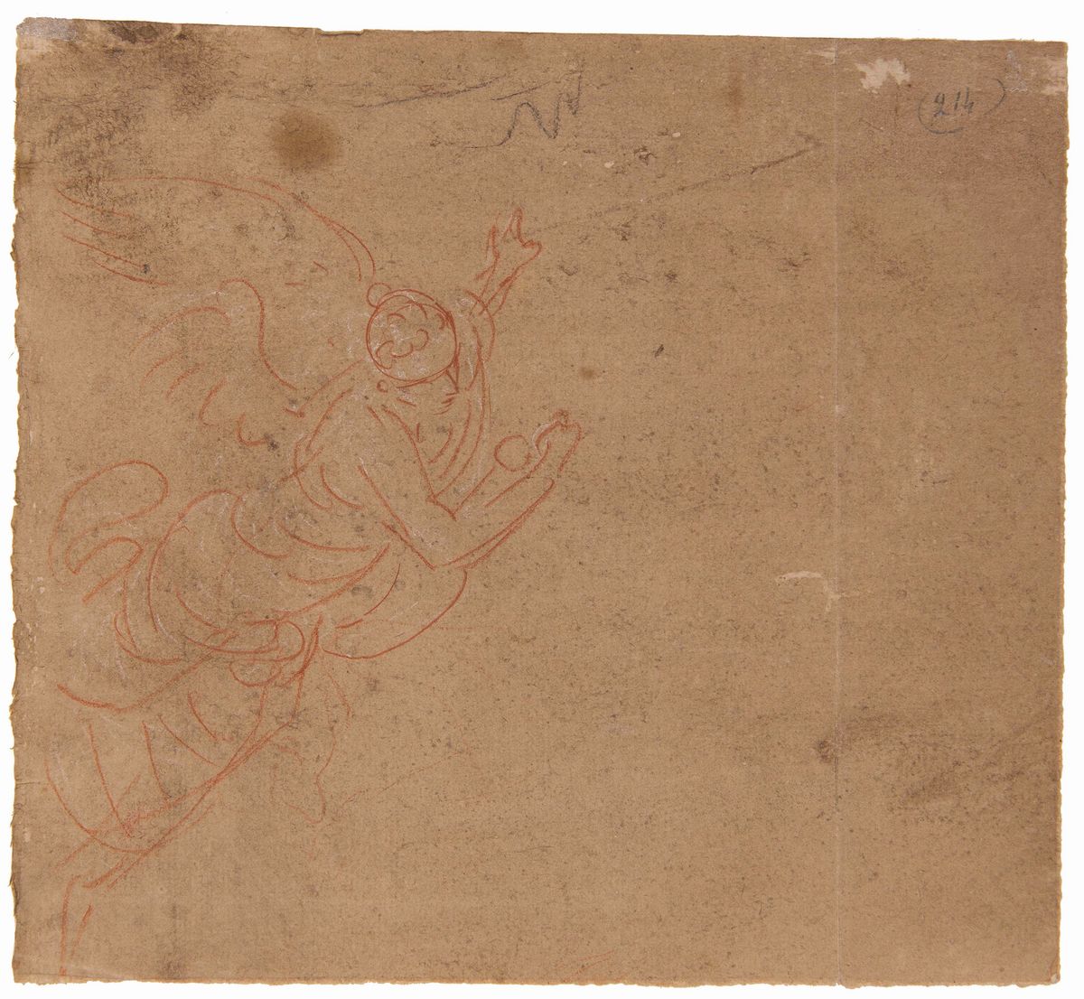 a) Angelosanguigna su carta, mm 210x190b) Studio di guerriero penna e inchiostro bruno, mm 54x60