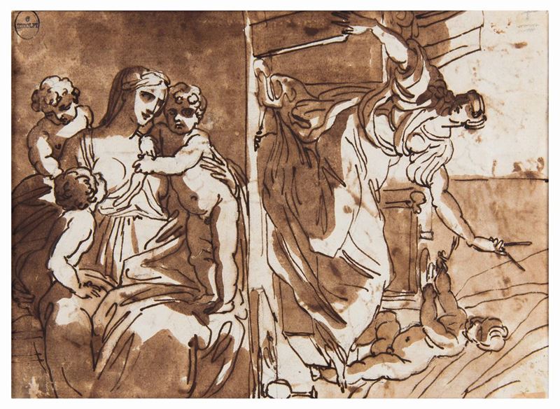 recto-verso, penna e acquerello bruno su carta, mm 166x222