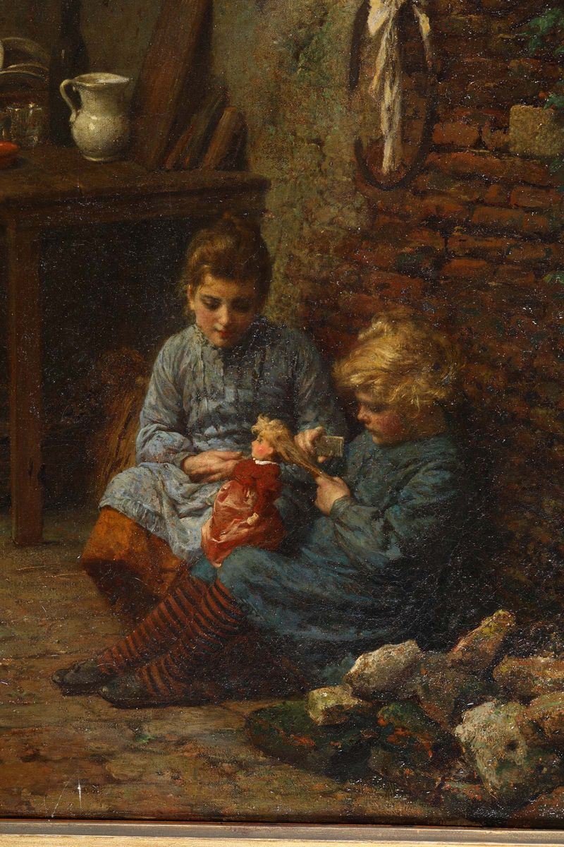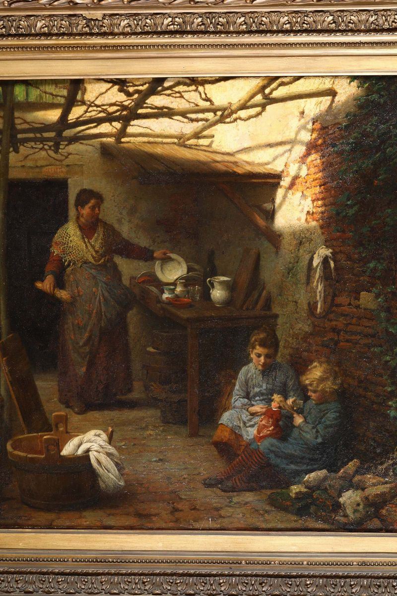 Raffaele Giannetti (1832 - 1916) Gioco di bimbe nel cortile