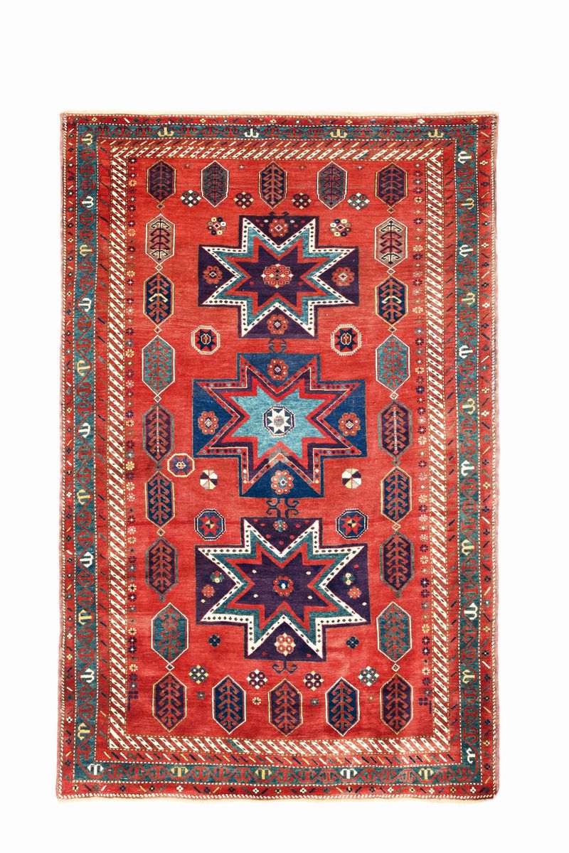 campo rosso con tre stelle sovrapposte e scudi contenenti alberi stilizzati, cm 250x162