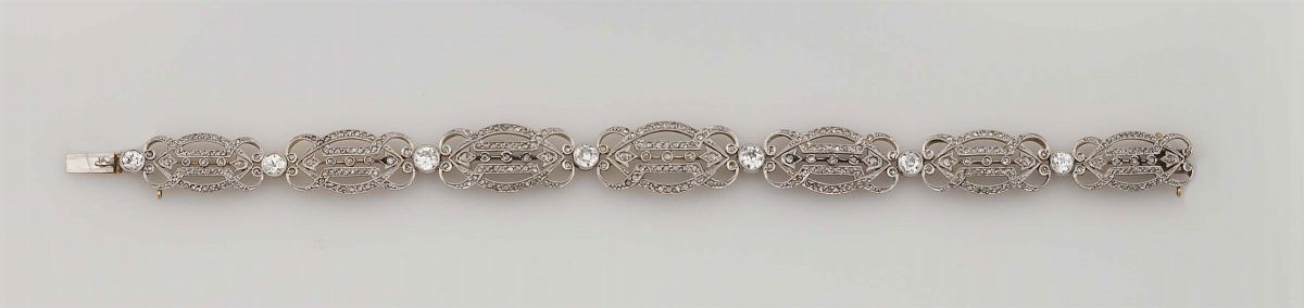 Old-cut diamond, gold and silver bracelet. Musy, Torino
