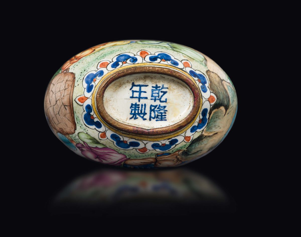 A Canton enamelled snuff bottle with wise men, China, Republic, 20th century