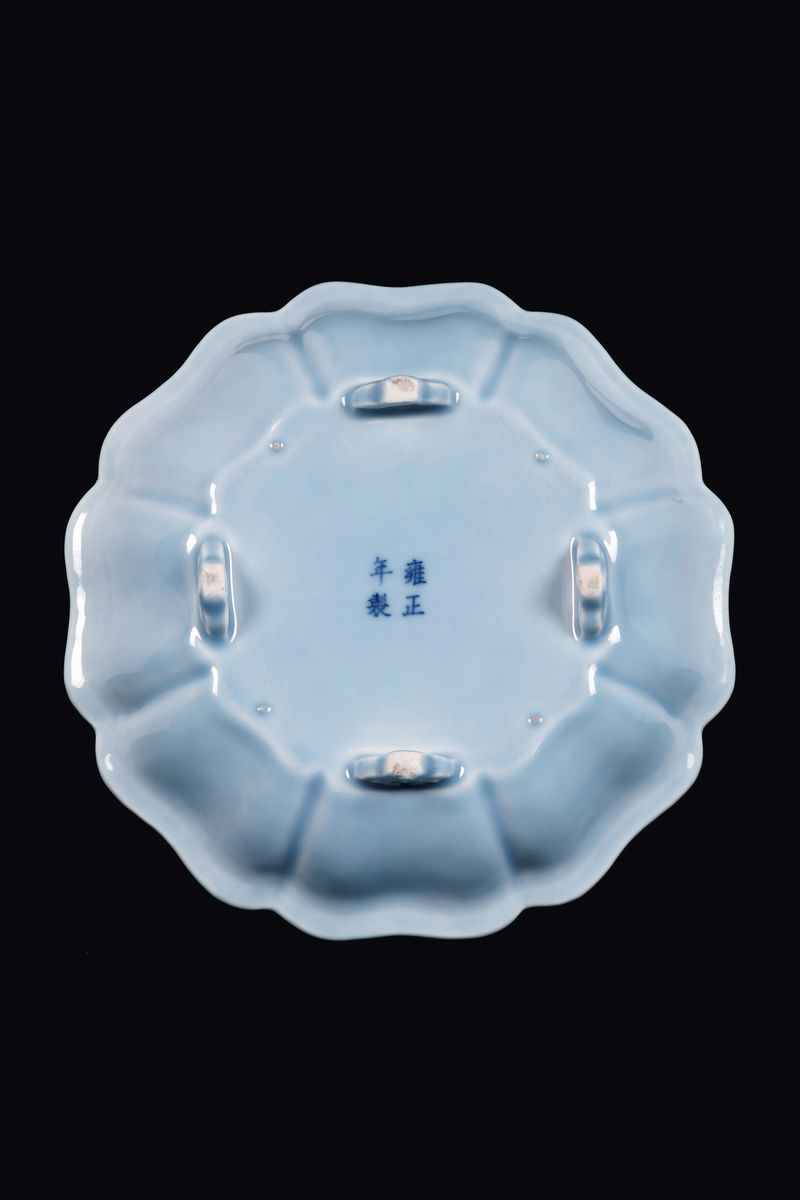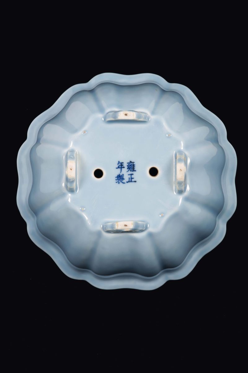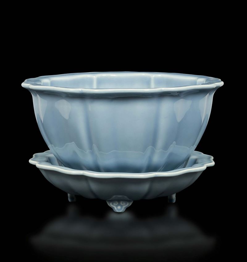 A Clair de Lune porcelain grooved jardinière, China, Qing Dynasty, 19th century