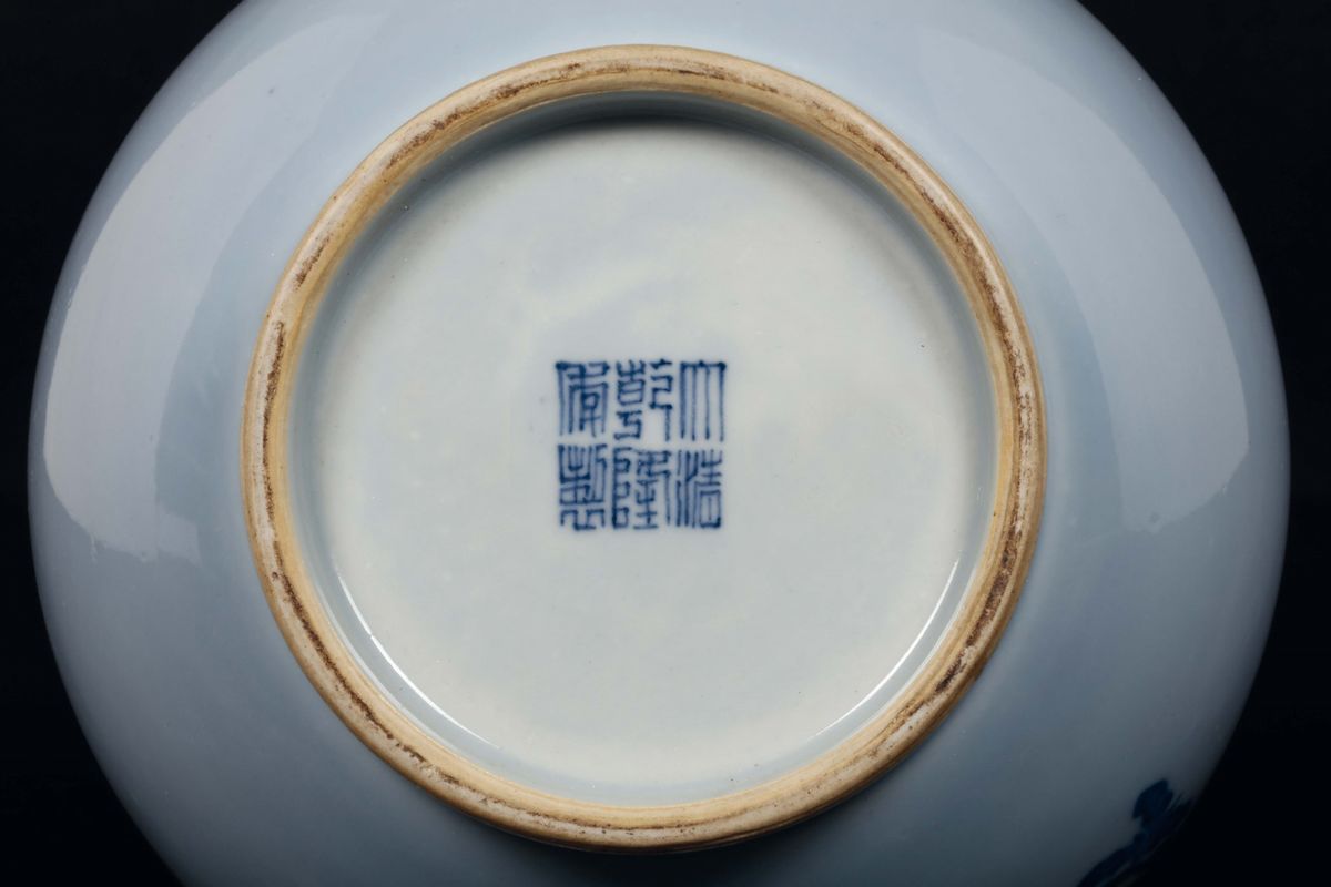 A Clair de Lune porcelain vase with bats and peaches, China, Qing Dynasty, Qianlong Mark and of the Period (1736-1795)