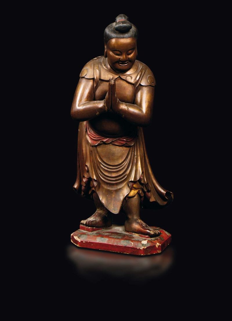 A gilt and lacquered wood figure of Sudhana, China, Qing Dynasty, 19th century