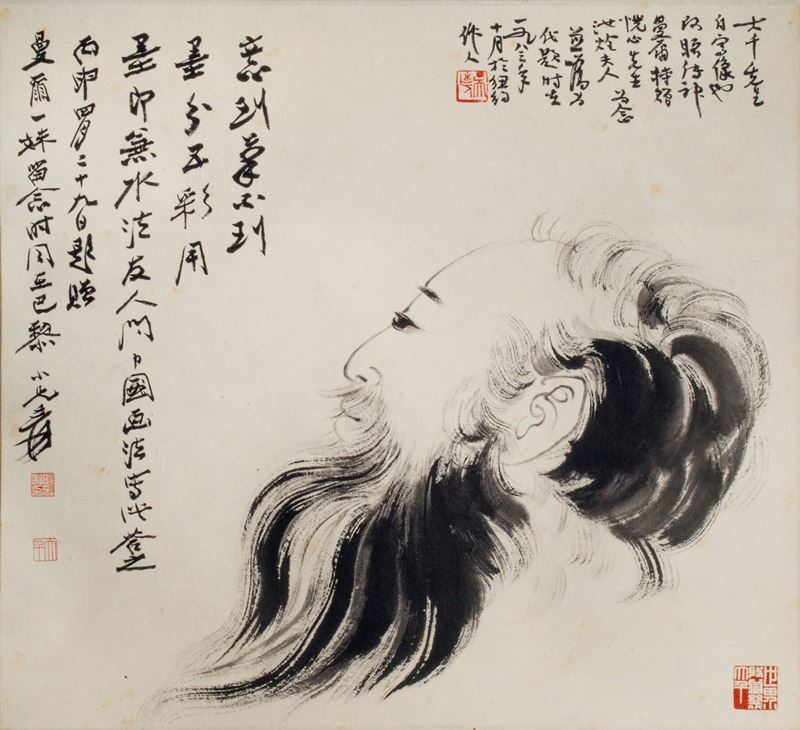 A painting on paper depicting wise man with inscritpions, China, early 20th century