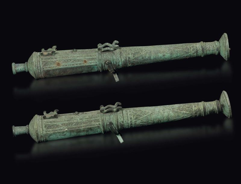 A pair of bronze cannons, China, Qing Dynasty, 18th century