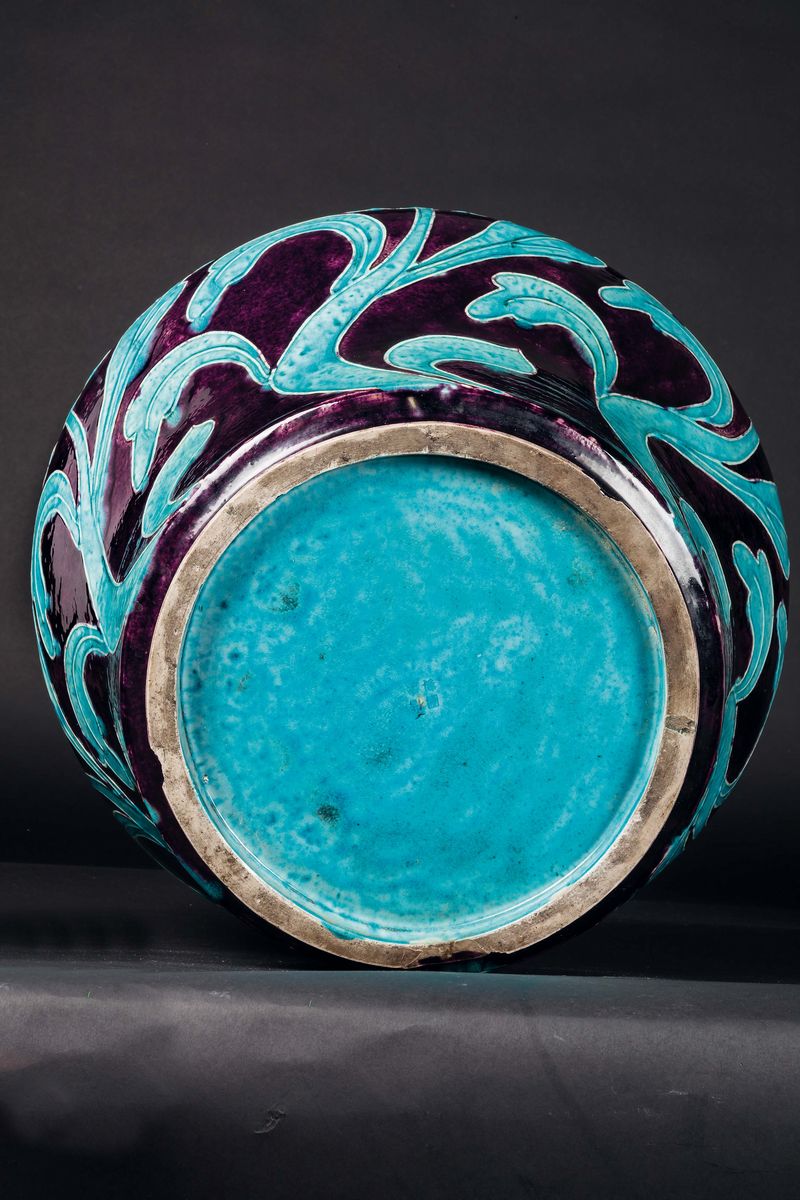 A purple-ground porcelain potiche and cover with light-blue flowers, China, Qing Dynasty, 19th century