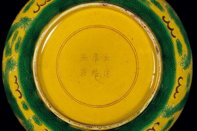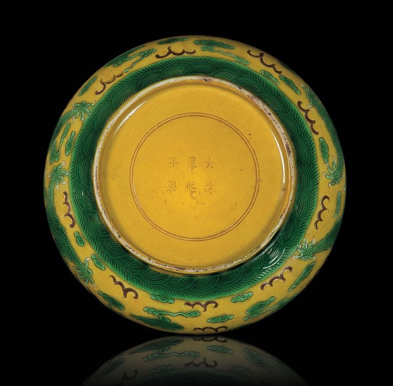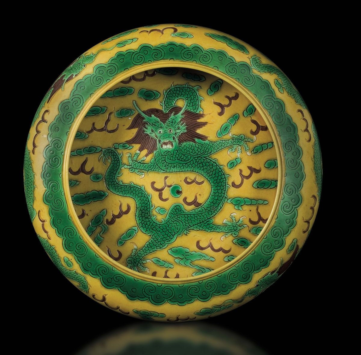 A Sancai porcelain bowl with dragons between clouds, China, Qing Dynasty, Guangxu Period (1875-1908)