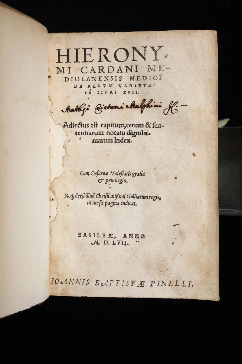 Cardano, Gerolamo Hieronymi Cardani mediolanensis medici de rerum varietate libri XVII..Basileae, Per Henrichum Petri, 15 [..]