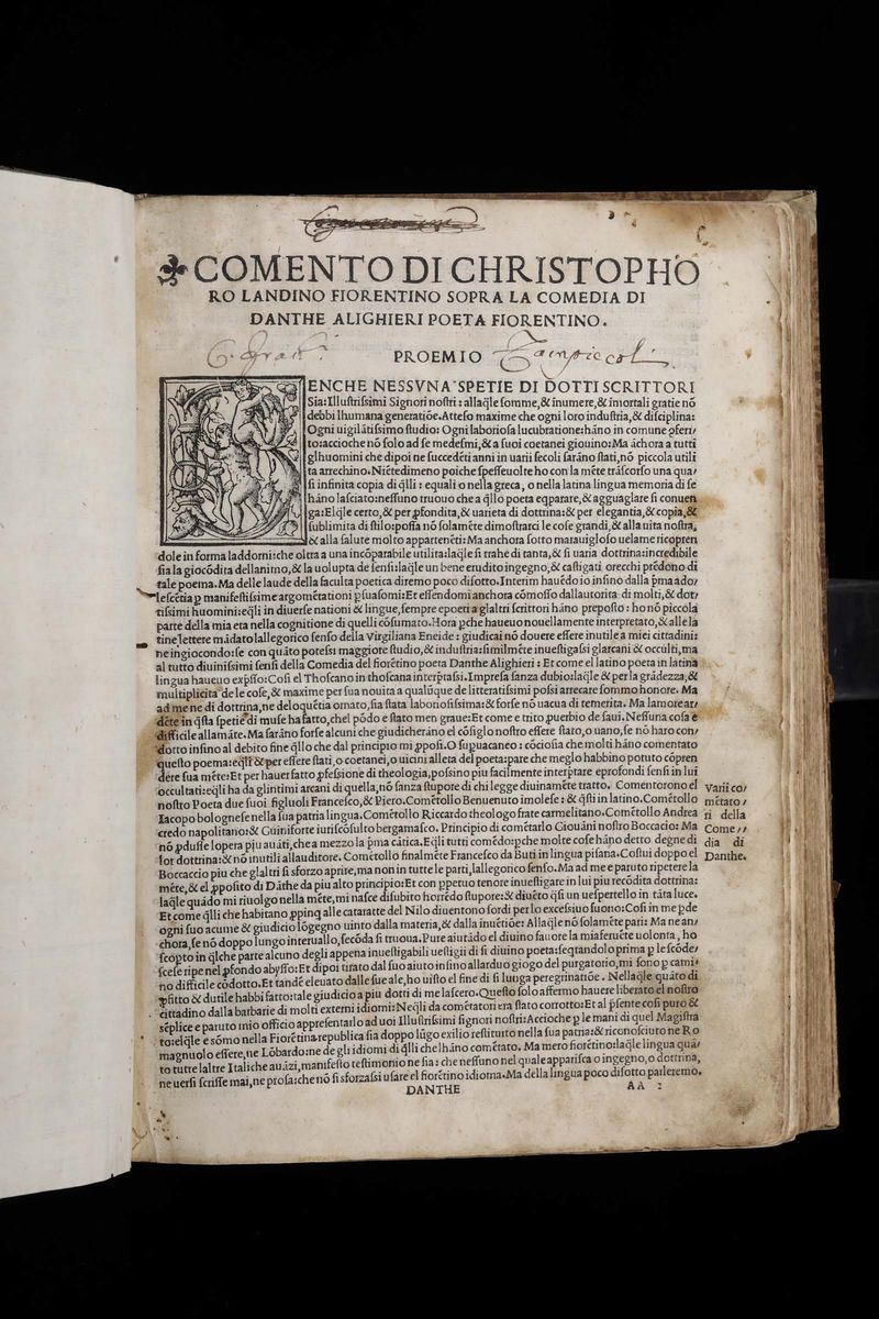La Divina Commedia de Danthe Alighieri con el comento de Cristophoro Landino..Jacob del burgofranco Pavese ad istantia ..Luca Antonio Giunta,Venetia, 1529.