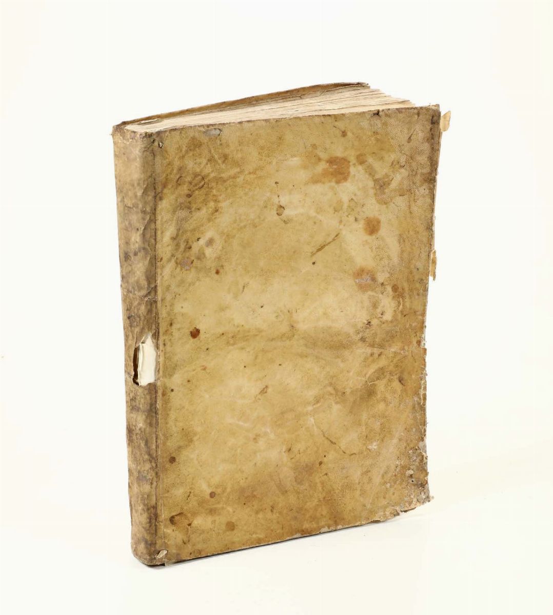 In-folio. Legatura coeva in pergamena floscia parzialmente staccata. (12)+367+81) pp. Manca il frontespizio calcografico altrimenti esemplare genuino e marginoso.