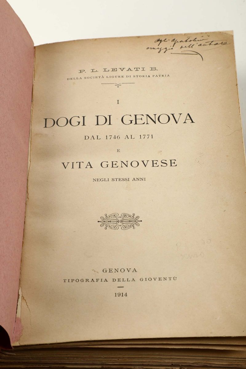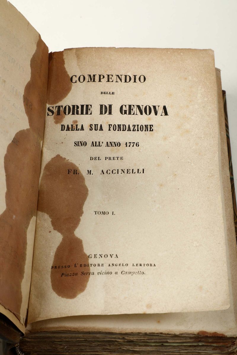 In-16°. Legatura in piena pelle del secolo XIX. Esemplare un poco brunito. Si uniscono nel lotto altre 6 opere di storia genovese dei secoli XIX e XX.