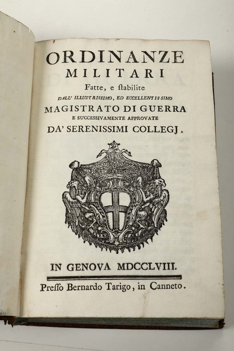 Ordinanze militari fatte e stabilite dall'illustrissimo ed ecellentissimo Magistrato di Guerra..., Genova, Bernardo Tarigo, 1758