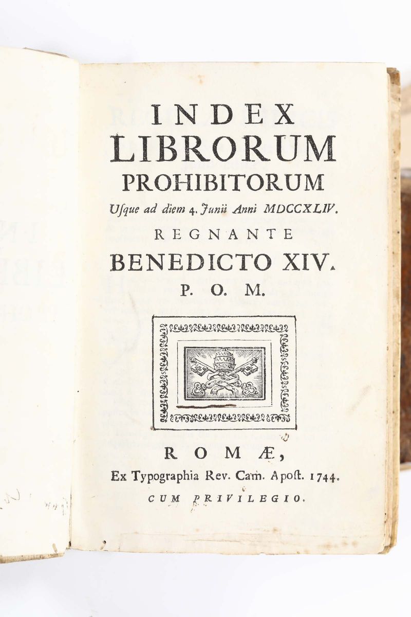 Lotto di quattro volumi di vari argomenti. Index librorum prohibitorum usque ad diem 4 Junii 1744..Romae, 1744