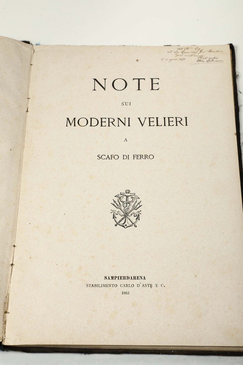 In-4°. Legatura in brossura editoriale. Bell'esemplare in barbe. Si tratta della sola parte di testo del dizionario di marina facente parte del Dizionario di metodica. Si unisce nel lotto: Note sui moderni velieri a scafo di ferro, Sampierdarena, Carlo d'Aste, 1883