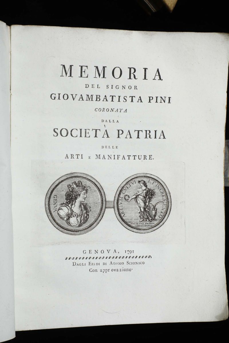 Pini, Giovan Battista Memoria del Signor...coronata dalla Società patria delle Arti e delle manifatture, Genova, eredi Scionico, [..]