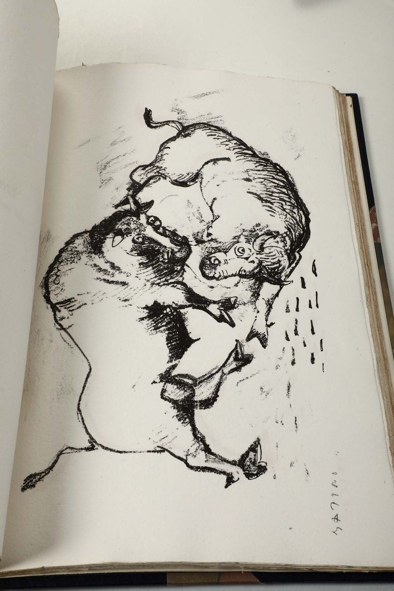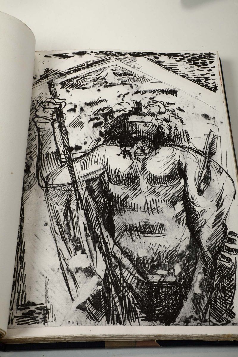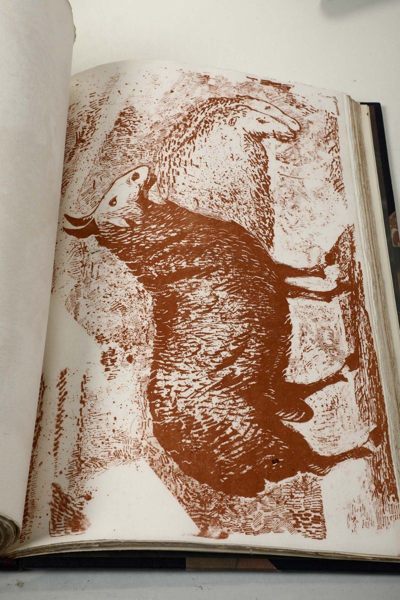 In-4°. Elegante legatura in mezzo marocchino blu e punte (rottura al piatto anteriore, rotture al cofanetto). 130 esemplari numerati con illustrazioni litografiche di Marino Marini.