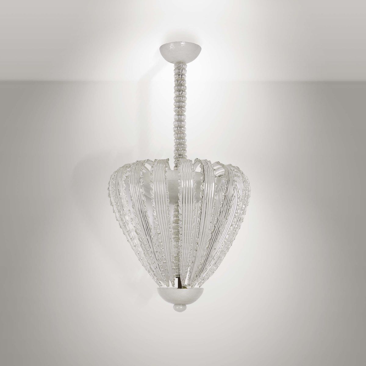 Lampada a sospensione in vetro di Murano con struttura in metallo laccato. Prod. Barovier&Toso, Italia, 1940 ca. cm 65x100