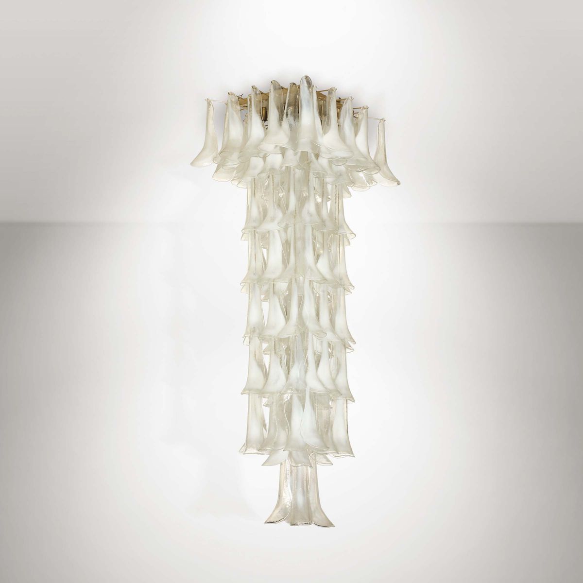 Lampada a plafoniera con struttura in metallo ed elementi modulari diffusori in vetro di Murano.