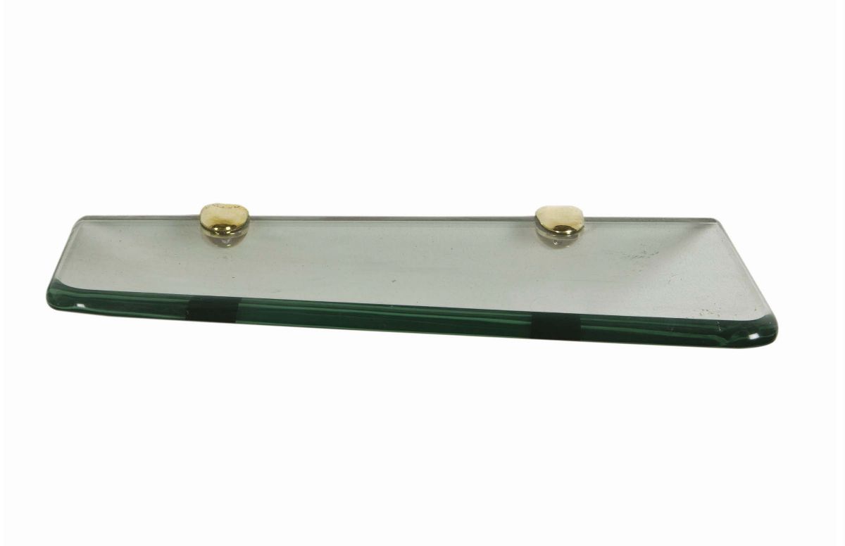 Mensola in cristallo di forte spessore con supporti in fusione di ottone. Prod. Fontana Arte, Italia, 1950 ca. cm 60x24