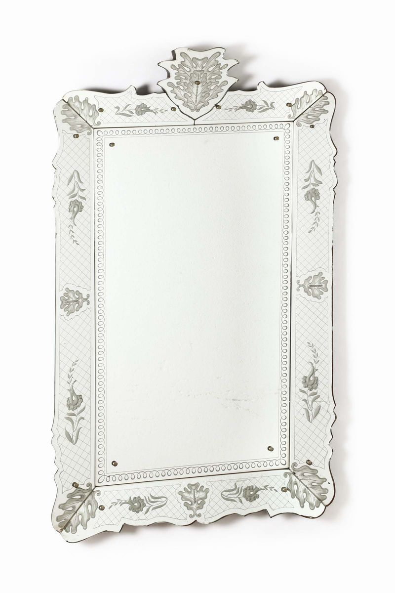 Specchiera con cornice in cristallo decorato. Prod. Fontana Arte, Italia, 1947 cm 128x79