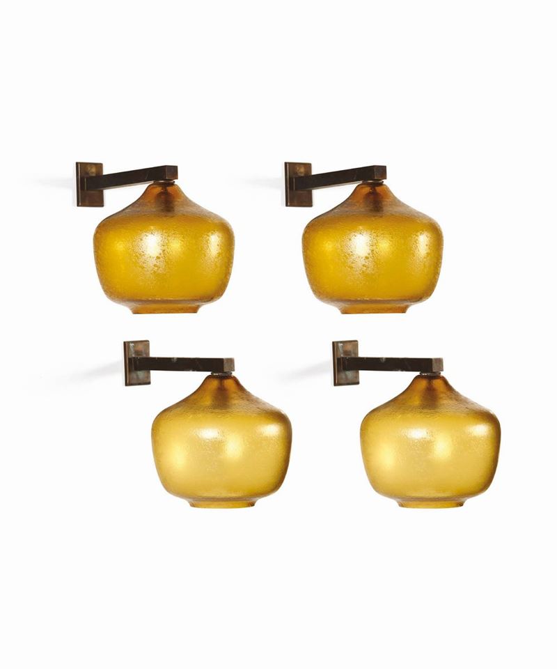 Quattro appliques con struttura in metallo e diffusore in vetro di Murano.
