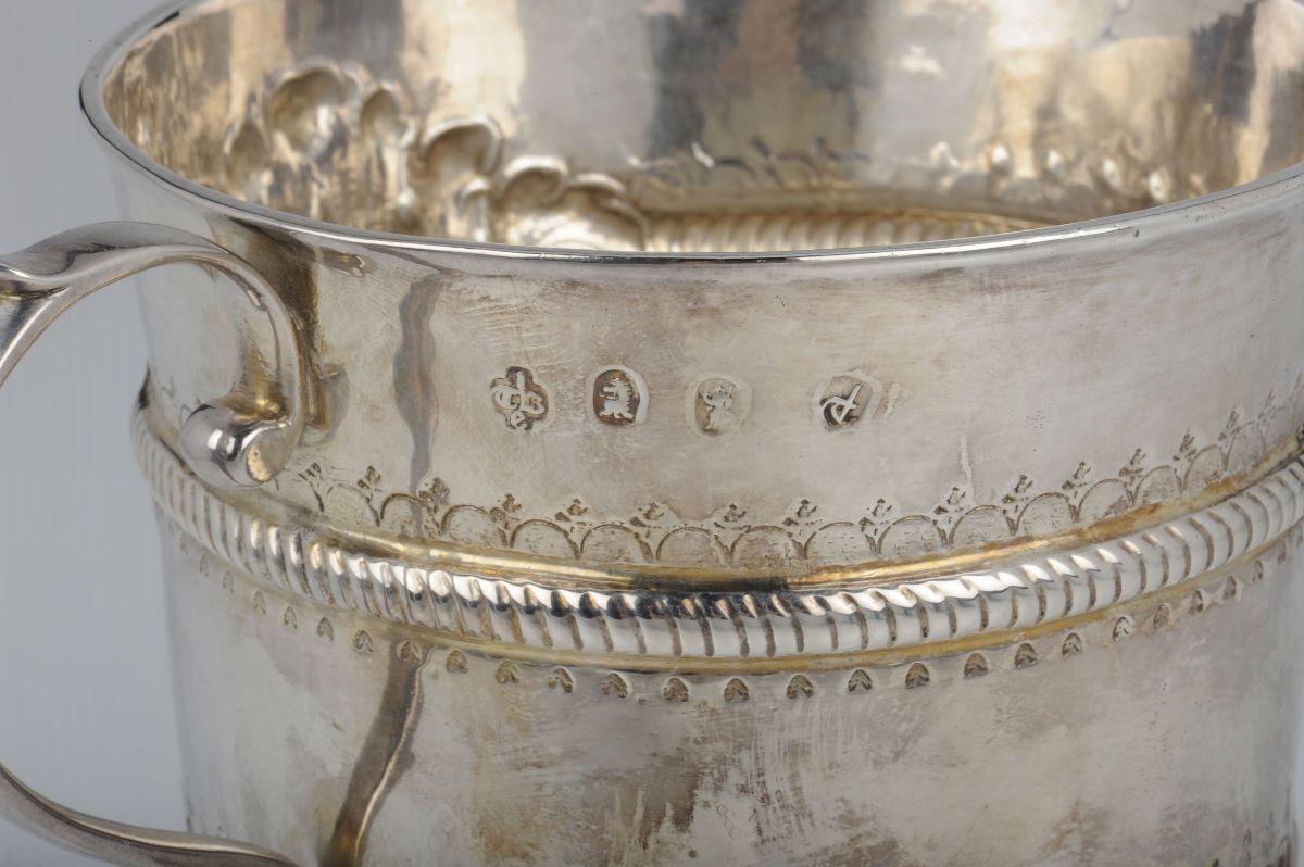 A molten, embossed and chiselled silver Porringer, silversmiths Robert Timbrell and Joseph Bell I, London 1714
