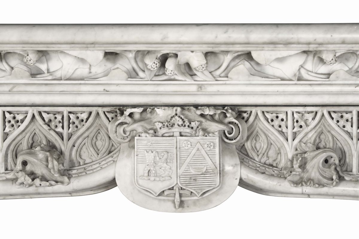 A monumental neo-gothic chimney in marble, England or France, 19th century