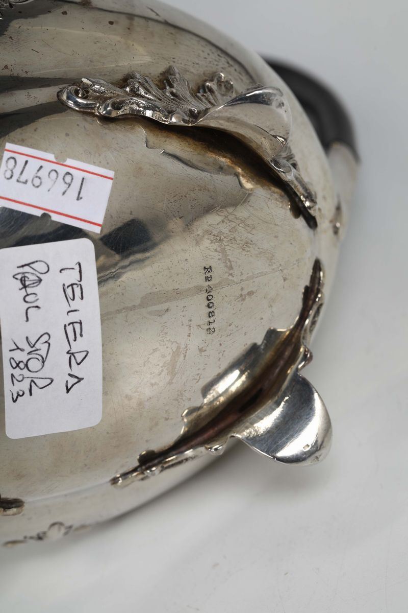 A teapot in molten, embossed and chiselled sterling silver. Birmingham 1830