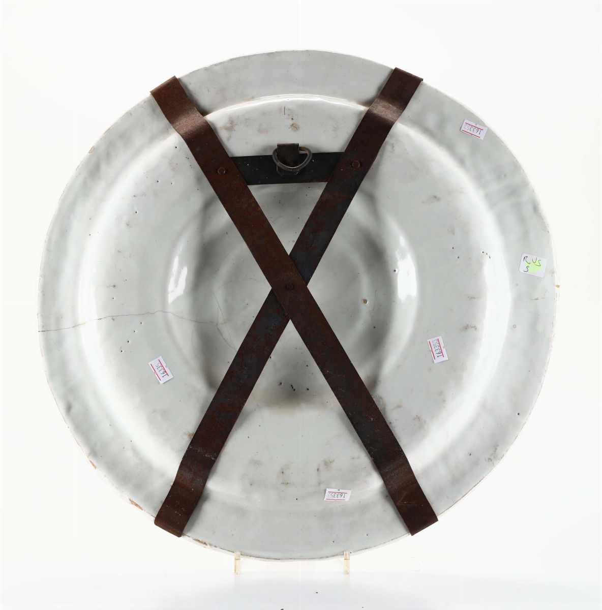 Ricavato da stampo ospita nell’umbone uno stemma vescovile policromo