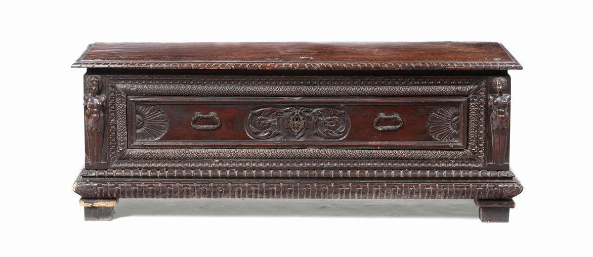 Cassapanca in legno intagliato, XVIII secolo