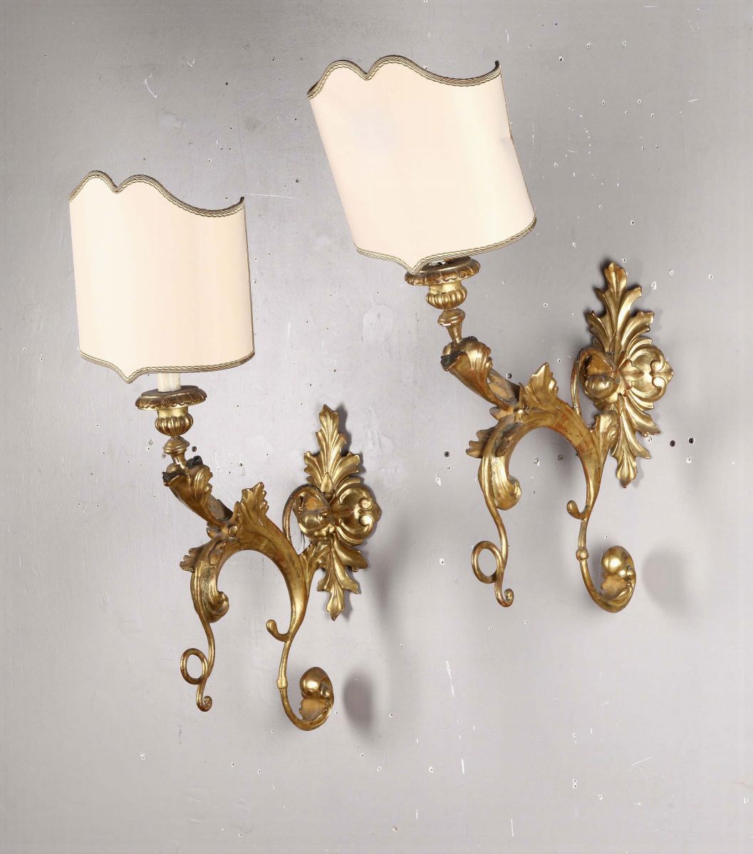 Coppia di appliques in legno intagliato e dorato, XVIII-XIX secolo