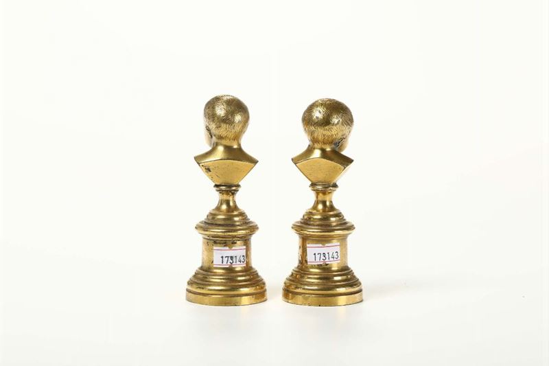 Coppia di busti di bambini in bronzo dorato, XX secolo