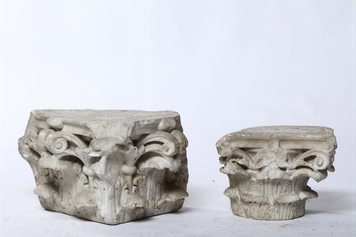 Coppia di capitelli in marmo scolpito, XIX secolo